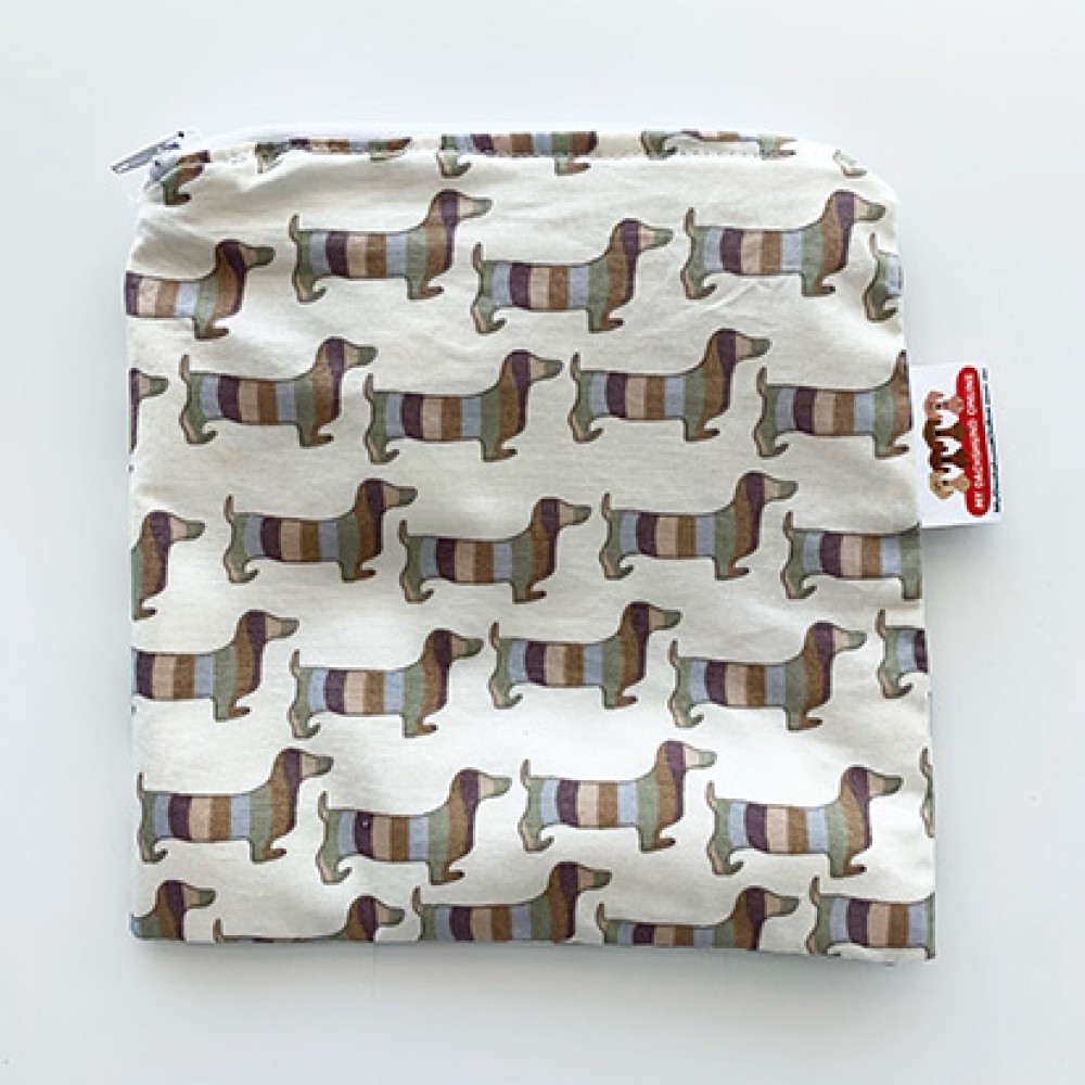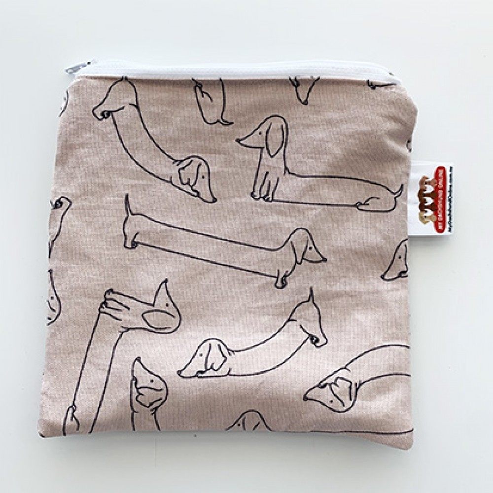 With fun dachshund print outer fabrics and food safe waterproof lining, these pouches are suitable fro a range of things such as doggo treats, human snacks, lunch, keys, wallet, phone, makeup, sanitary items, bathers and much more!