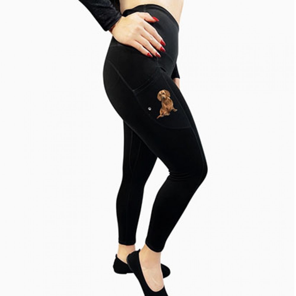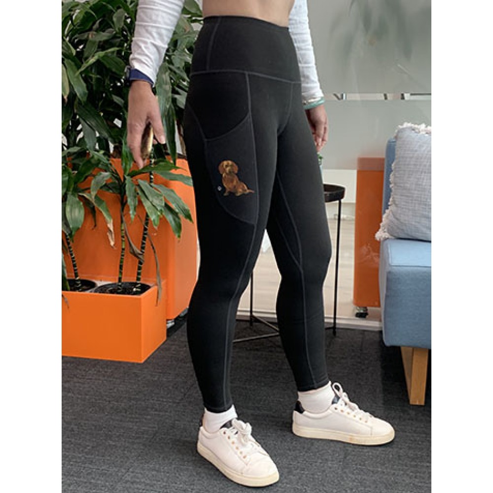 Dachshund leggings. Comfortable high waist leggings with wide elastic waistband to cover navel and provide tummy control while bending and stretching.