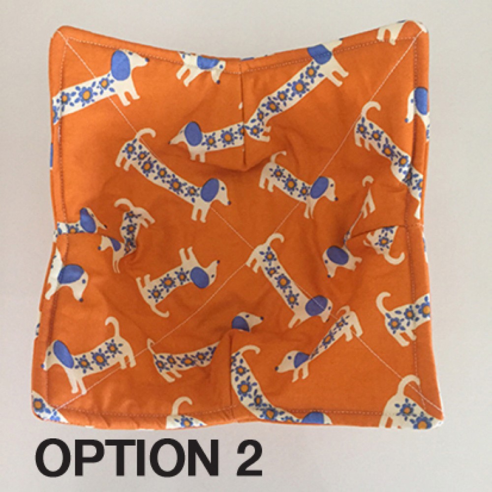 This cute bowl cozy is very versatile. It can be used for hot or cold foods.