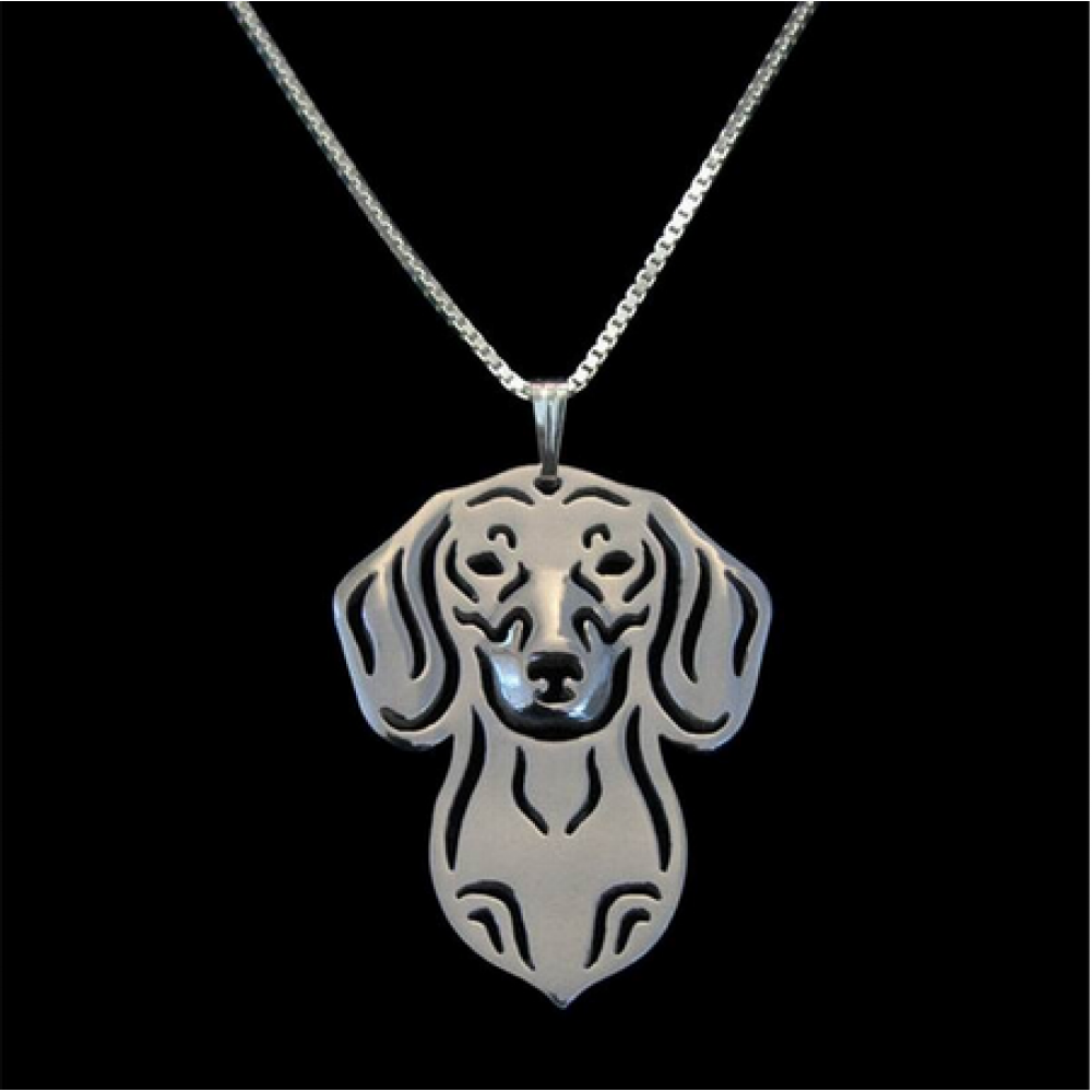 Adorable alloy metal embossed dachshund face necklace. Choose from silver, gold and rose gold.