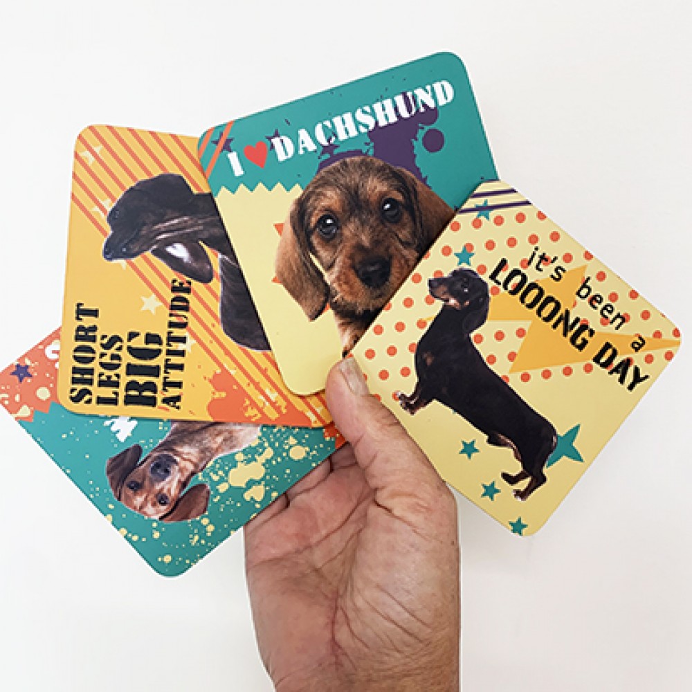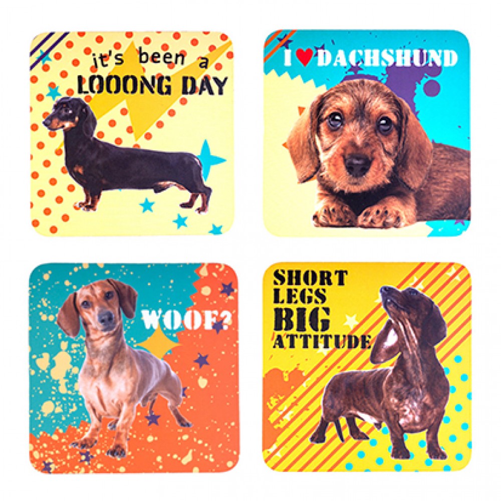 You absolutely need this set of 4 dog coasters. Featuring 4 different sausage dogs with cute sayings.